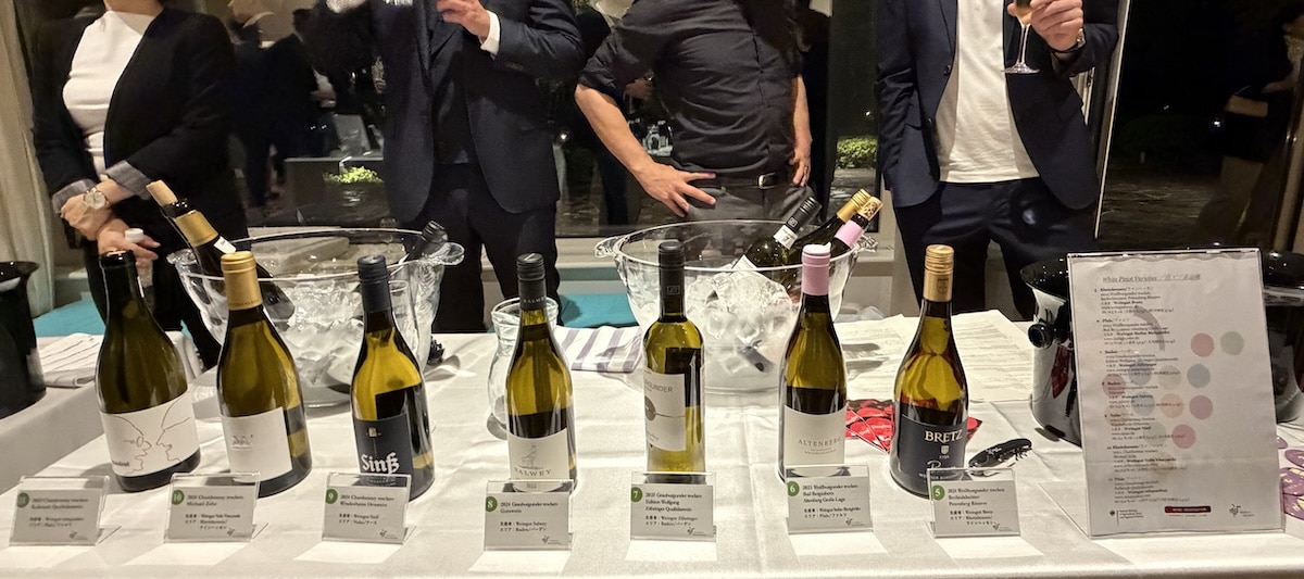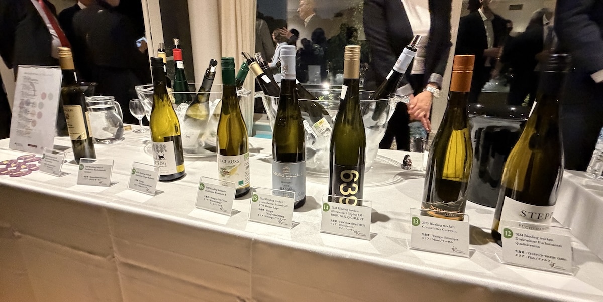 Twenty producers poured 27 wines across themed tasting corners — Riesling, Spätburgunder, Grauburgunder, sparkling — paired with Japanese food that proved, on the night, a natural match. The room stayed lively until the final glass.