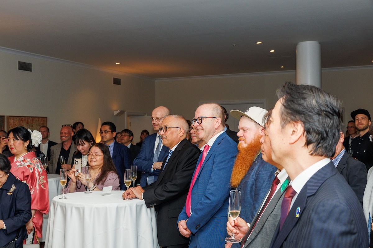 Outside the German Embassy residence in Minami-Azabu, rain fell steadily across the city on Wednesday evening. Inside, the mood could not have been more different.