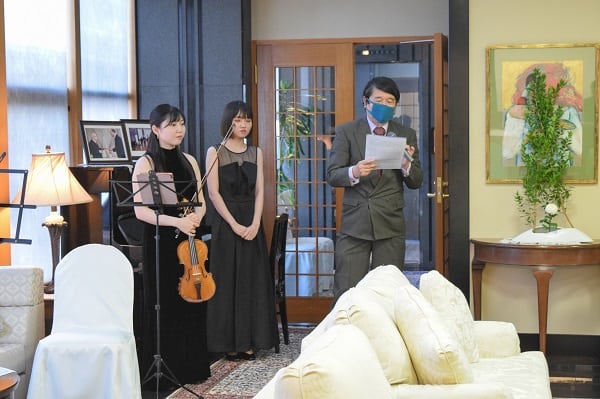 藝大大学院に在学中で、将来を嘱望された二人の演奏家、栗林衣李(バイオリン)と大塚菜々子(ピアノ)が珠玉の名曲の数々を演奏した。その中でも特に話題となり、観客の心をとらえたのは、チュニジアの有名な歌「Under the Jasmine Tree at Night(夜のジャスミンの木の下で)」であった。これはフダ夫人のリクエストにより、今回のコンサートのためにバイオリンとピアノの為に編曲された。誰もがこの美しいメロディーに魅了されていた。