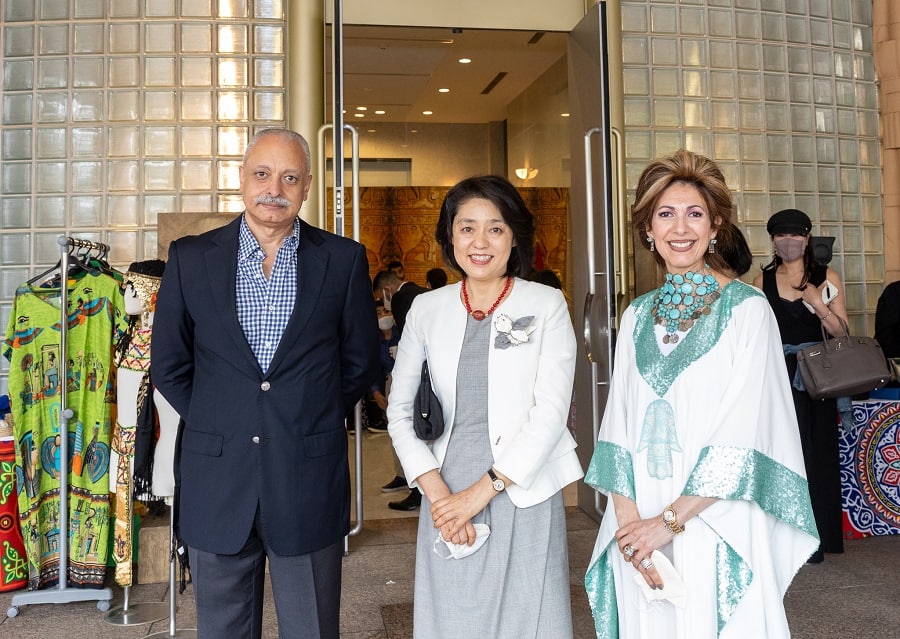 アイマン・カーメル駐日エジプト大使とガーダ・ユセフ夫人、そして大使館のスタッフ、ボランティアの素晴らしいおもてなしを受け、ゲストは大変素晴らしい時間を過ごした。