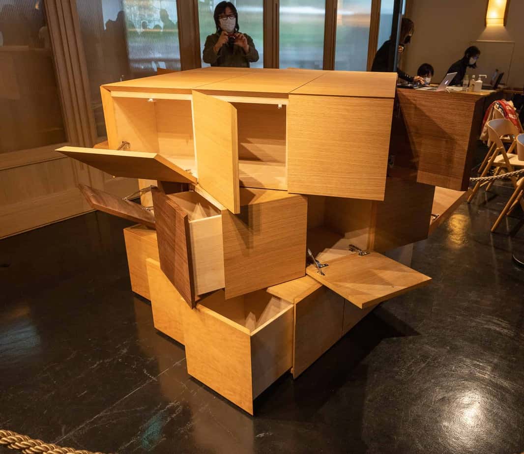 One of the lead-artists who participated includes star-architect Kengo Kuma, the architect of the Tokyo Olympic Stadium and the one responsible for the design of the National Stadium of Japan. His contribution to the celebration is a piece of rotating furniture resembling the looks of a Rubik’s Cube, which wowed a lot of guests and was considered as one of the event’s highlights.