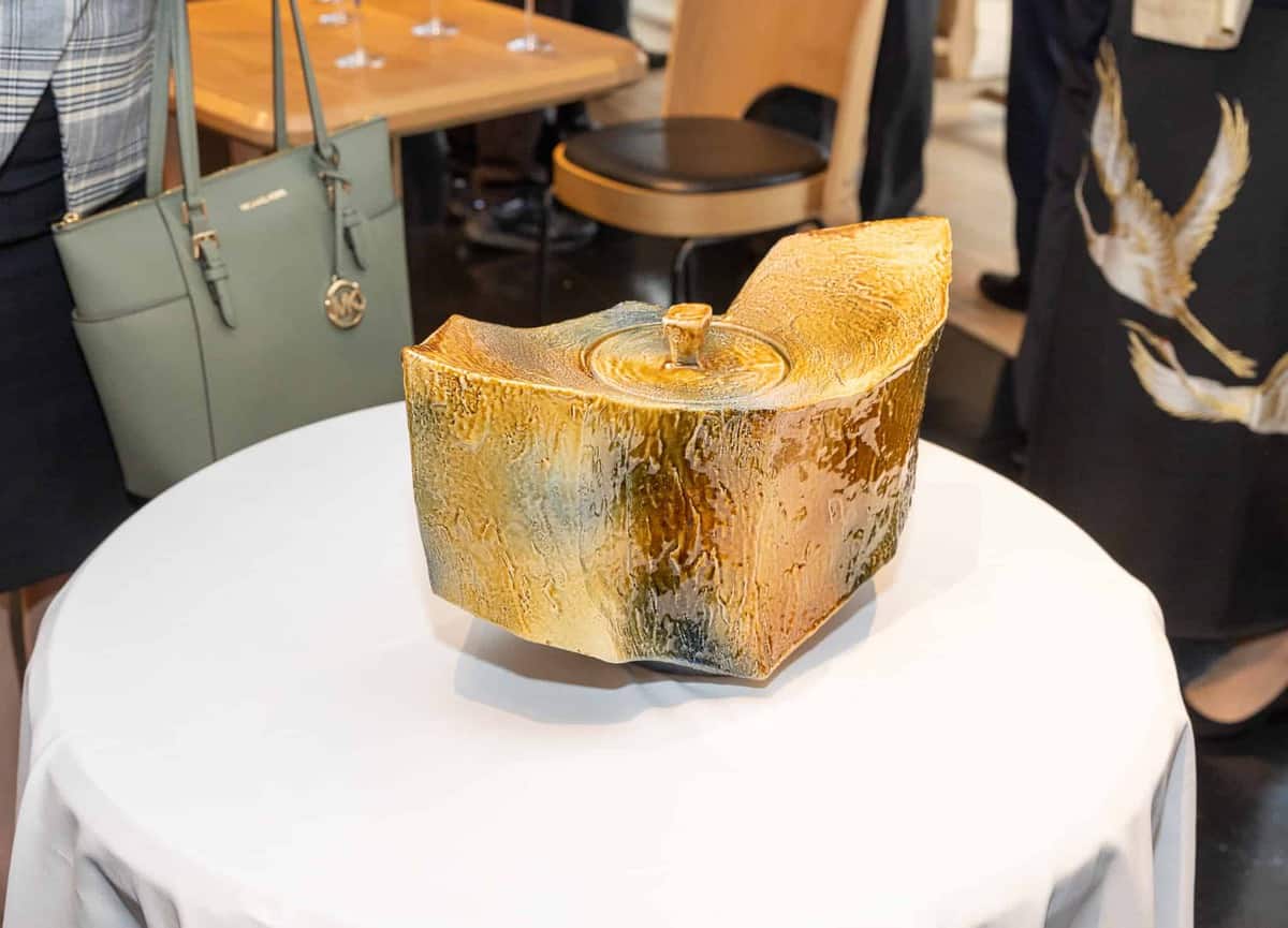 Famous ceramic artist Ohi Toshio, backed with three hundred and fifty years old of tradition, was able to reproduce the Cube’s colors into his pottery.