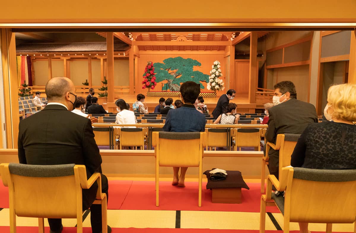 The event was organized and hosted by Madeleine Umewaka and the Embassy of Lebanon in Japan. Madeleine, who fled from Lebanon during the 1976 Civil War, married Mr. Nohhiko Umewaka, a Noh performer of the Umewaka family which has a 600-year long history in the arts of Noh.