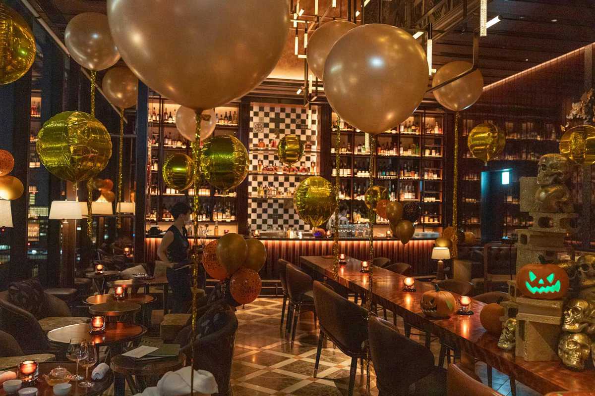 Even though VIRTÙ was decorated in pumpkin heads, various skulls and even a lifesize skeleton there was nothing spooking about this luxury venue. Located on the 39th floor of the new Four Seasons Hotel, where bartenders employ “modern Japanese techniques to reinterpret classic French flavors” of vintage French spirits and rare cognacs, VIRTÙ knows how to impress with their drink menu.